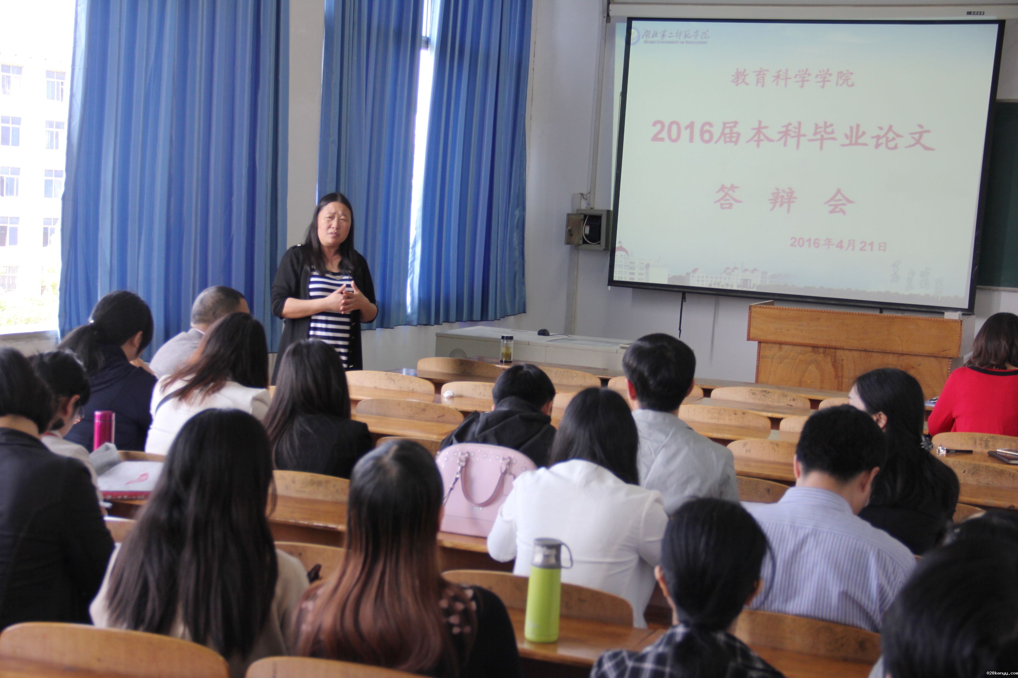 (通讯员 许雪莹)2016年4月21日在五号教学楼进行了2016届本科毕业论文答辩会。 答辩会共分十三个小组,每组由一名主席、两名成员、两名记录员组成。答辩会正式开始前,参加答辩的工作人员在5307教室聆听了答辩前的工作要求。会上,陈光春副院长介绍了毕业论文答辩流程、成绩评定、答辩记录等事项。教科院张红梅院长对本次本科生毕业论文答辩提出明确要求。她指出各位答辩老师不仅要给出论文分数,更要针对学生的论文提出修改建议和改进措施,使这场答辩会真正发挥教育意义,提高我院人才培养质量。