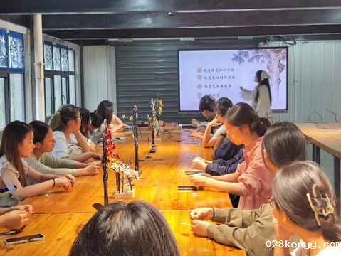 图为主讲人杨丹播放缠花制作视频,同学们共同学习和欣赏英山缠花制作的详细过程。主讲人杨丹向同学们详细示范缠花的过程与技巧,同学们认真听讲,积极实践。